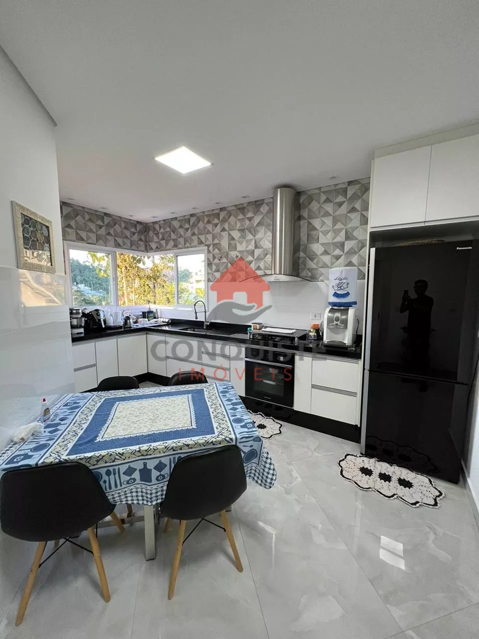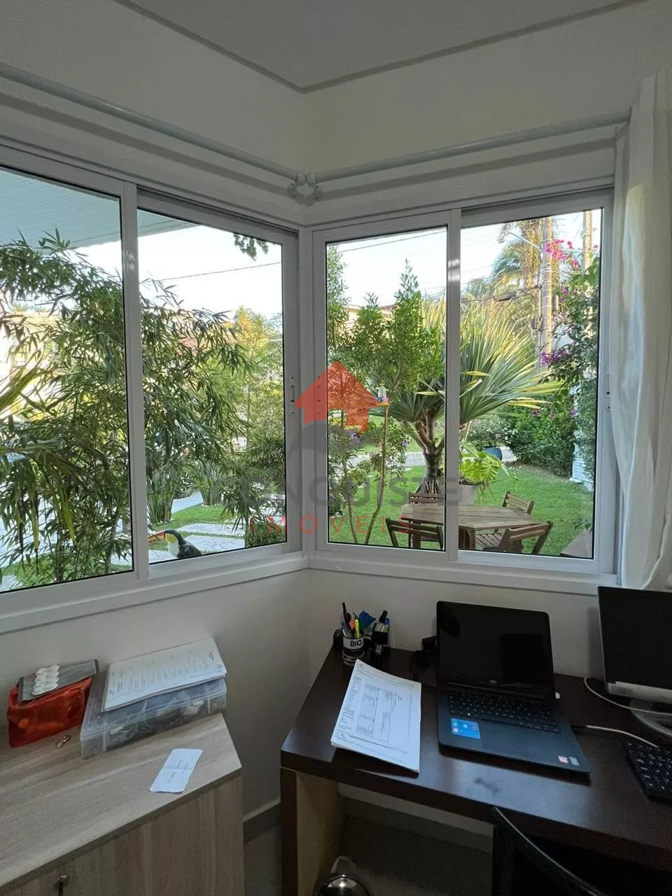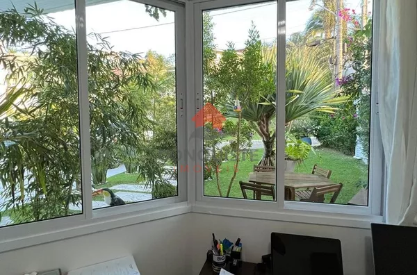 Entre as comodidades, destacam-se a área de churrasco ideal para momentos de lazer, um escritório bem projetado para suas necessidades profissionais, e uma garagem espaçosa. O jardim cuidadosamente mantido oferece um refúgio sereno, enquanto a lavanderia prática facilita as tarefas do dia a dia.