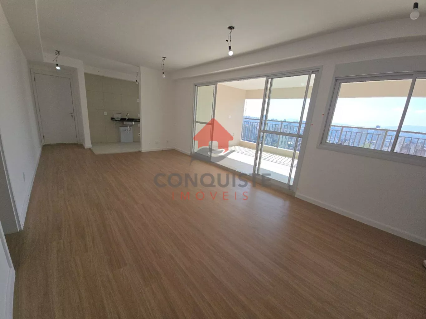 Sala para 2 ambientes integrados com varanda