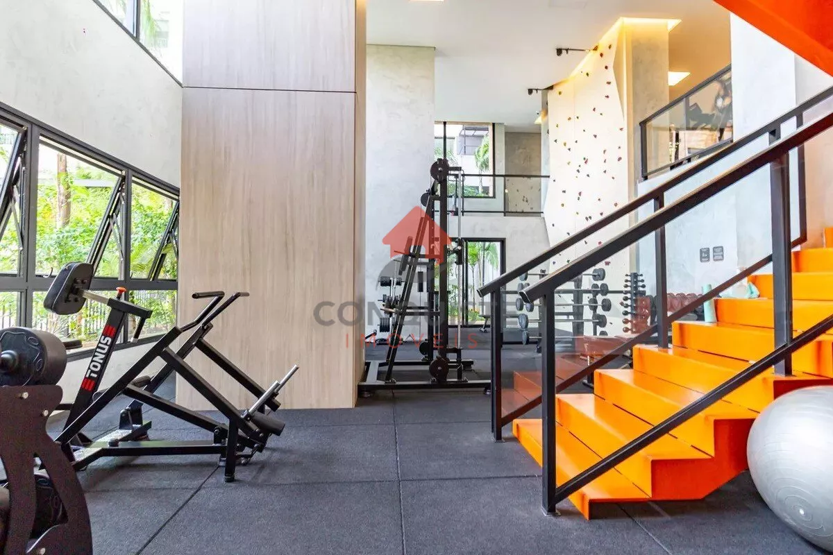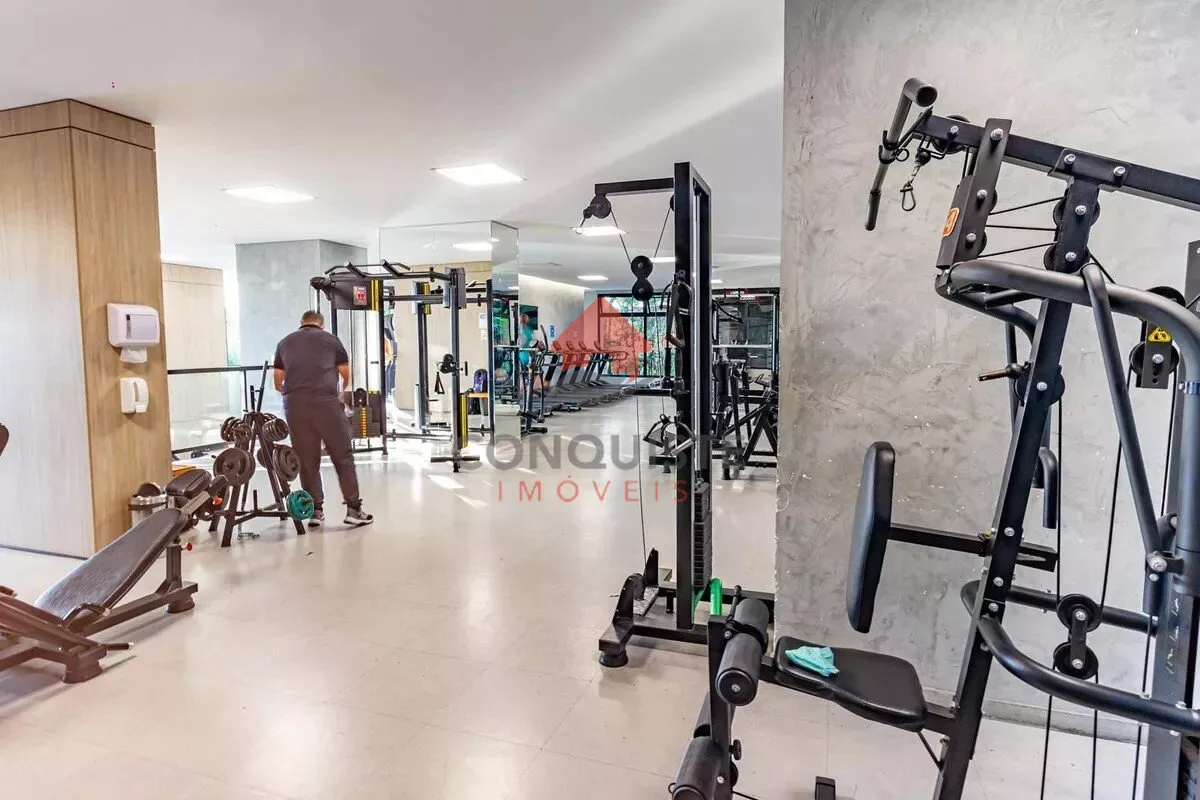 Ampla área de lazer com piscina, academia equipada e salão de festas
