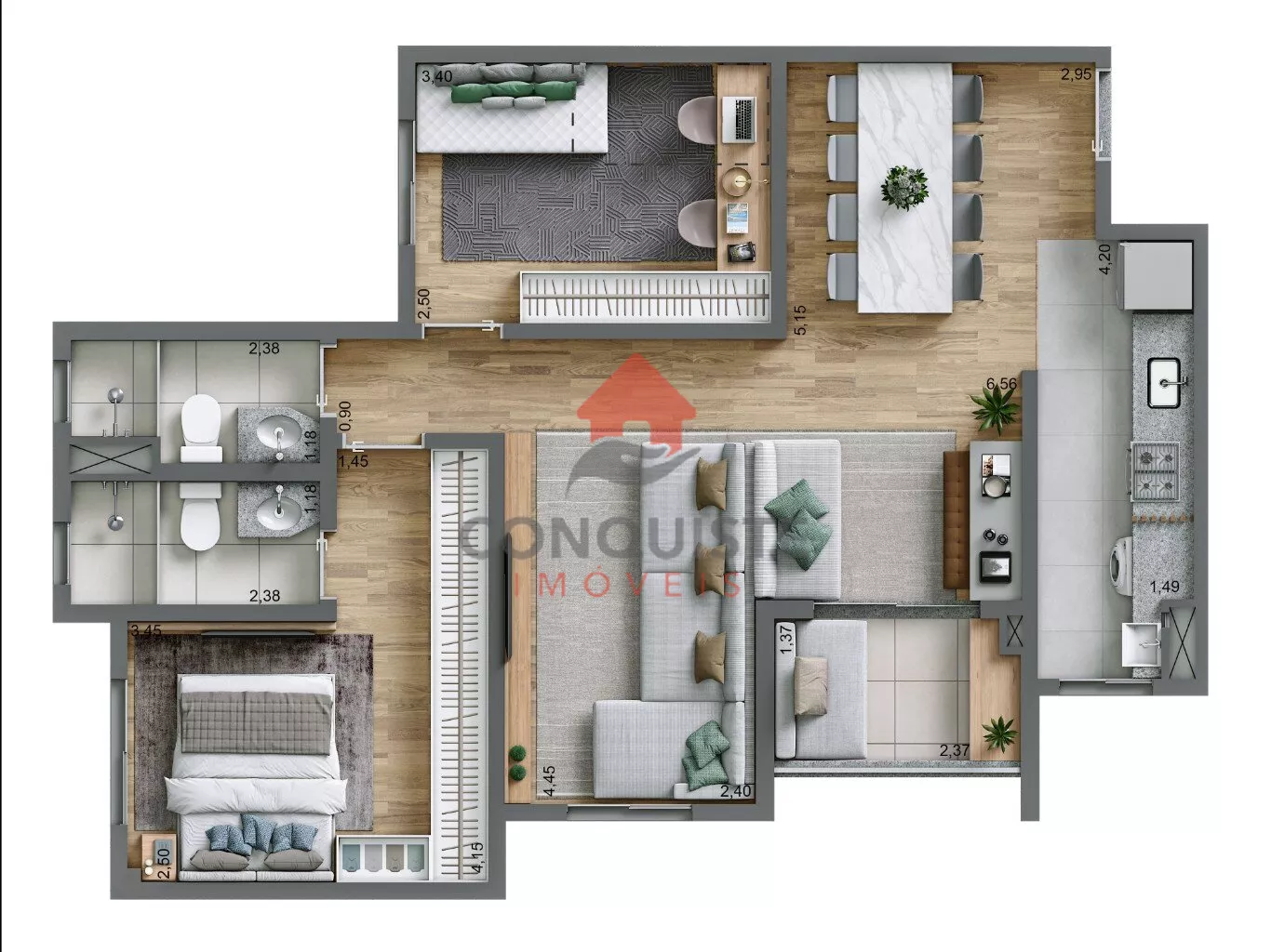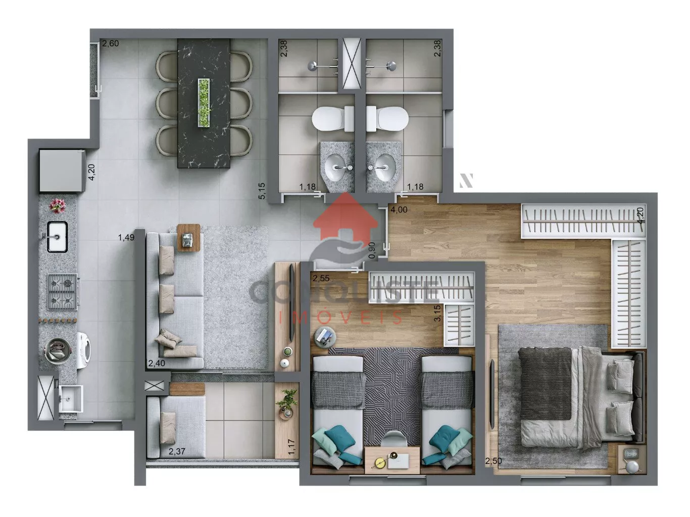 * 1 a 3 Dorrmitórios